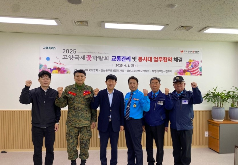 재단법인 고양국제꽃박람회(이사장 이동환)가 지난 3일 해병대 고양시전우회, 일산동부 모범운전자회, 일산서부 모범운전자회와 일산호수공원 고양꽃전시관에서 ‘2025고양국제꽃박람회 교통관리 및 봉사 지원을 위한 업무협약을 체결했다.