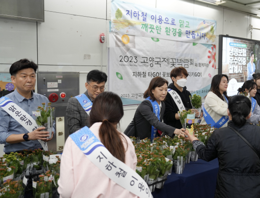 ()고양국제꽃박람회, 서울교통공사와 출근길 꽃 나눠주기 캠페인 진행