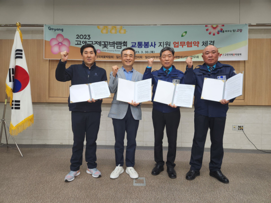 재단법인 고양국제꽃박람회(이사장 이동환)와 고양시 해병전우회, 일산동부 모범운전자회, 일산서부 모범운전자회가 지난 330일 일산 호수공원에 소재한 고양꽃전시관에서 고양시와 일산동부 경찰서, 단체 관계자들이 참석한 가운데 2023고양국제꽃박람회 행사의 교통 봉사를 위한 협약식을 맺었다.