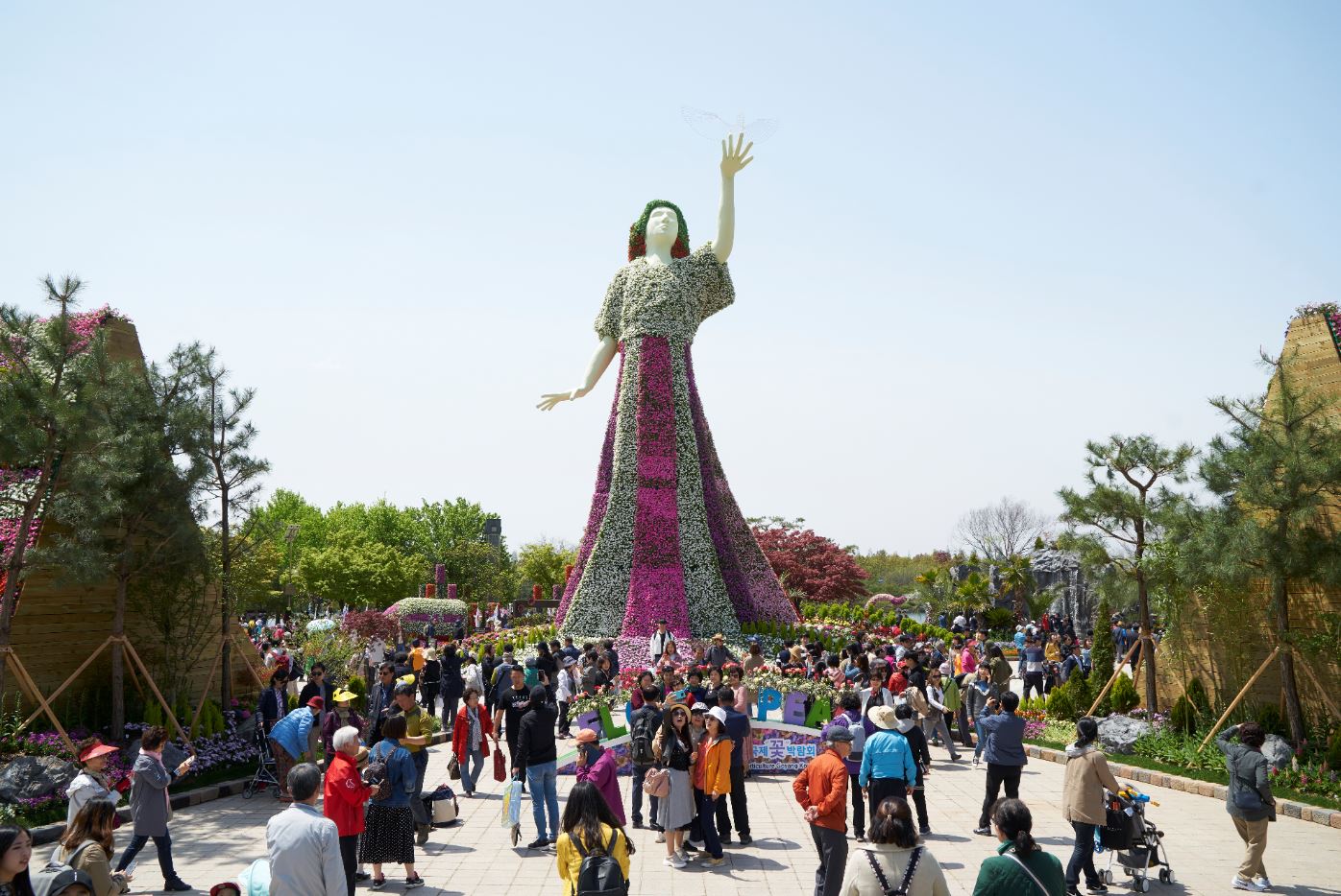새로운 전시 공간감을 선보인 세계화훼교류관의 ‘유라시아’, 입체 화훼 장식 ‘플로토피아’, 세계 최고 수준의 화훼 공간 장식 ‘세계 화예 작가 초청전’ 등 꽃과 예술이 어우러진 전시가 가장 큰 인기를 끌었다. 야외에서는 7만 본의 튤립정원, 20m 높이의 평화의 여신, 화려한 플라워 터널 등에 관람객의 발길이 끊기지 않았다.