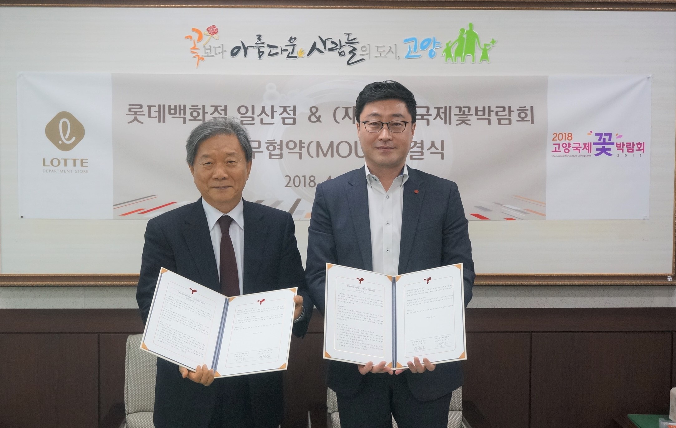 재단법인 고양국제꽃박람회(대표이사 고석만)는 롯데백화점 일산점(점장 이종성)과 지난 12일 고양시 호수공원 고양꽃전시관에서 MOU를 체결했다고 밝혔다.