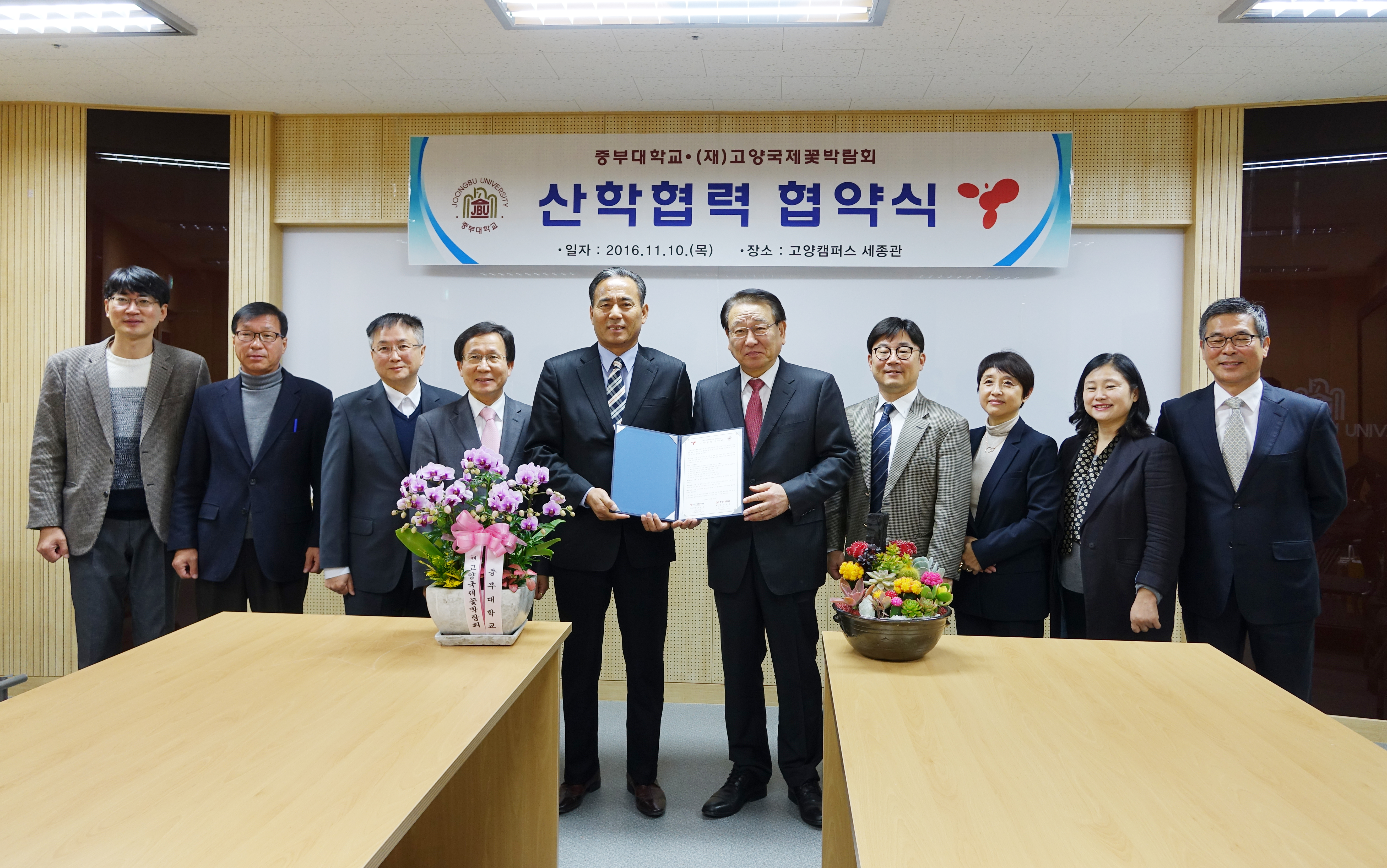 이날 협약식에는 고양국제꽃박람회 이봉운 대표이사, 중부대학교 홍승용 총장 등 관계자 10여명이 참석한 가운데 진행되었다.