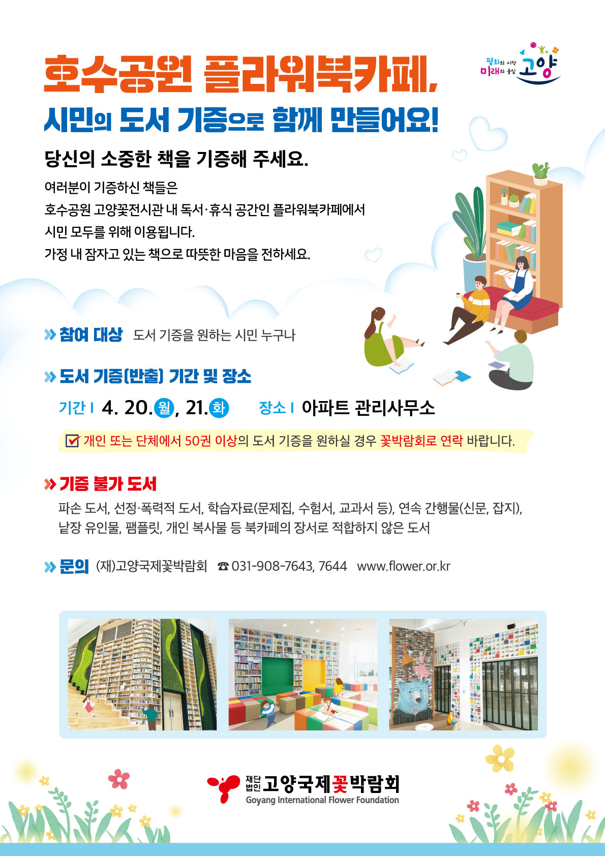 재단법인 고양국제꽃박람회는 ‘고양시민 도서 기증 캠페인’를 추진한다고 밝혔다.