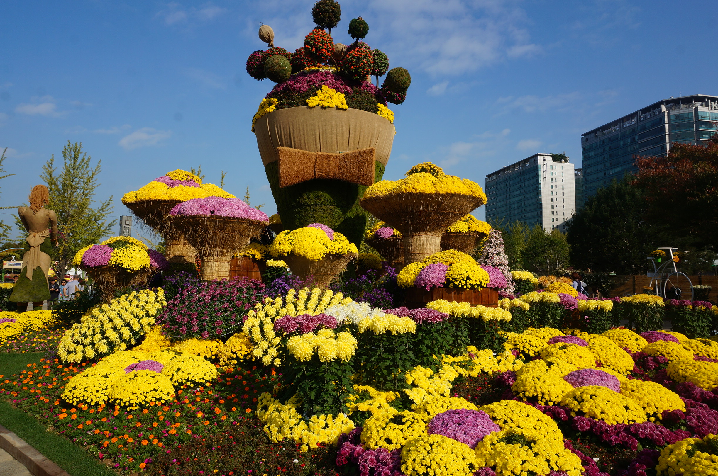 탐스럽게 활짝 핀 국화꽃으로 연출한 보름달 조형물과 달토끼, 사물놀이 토피어리가 축제의 흥을 더한다. 소원 트리에는 오색 리본에 직접 소원을 적어 달 수 있다.