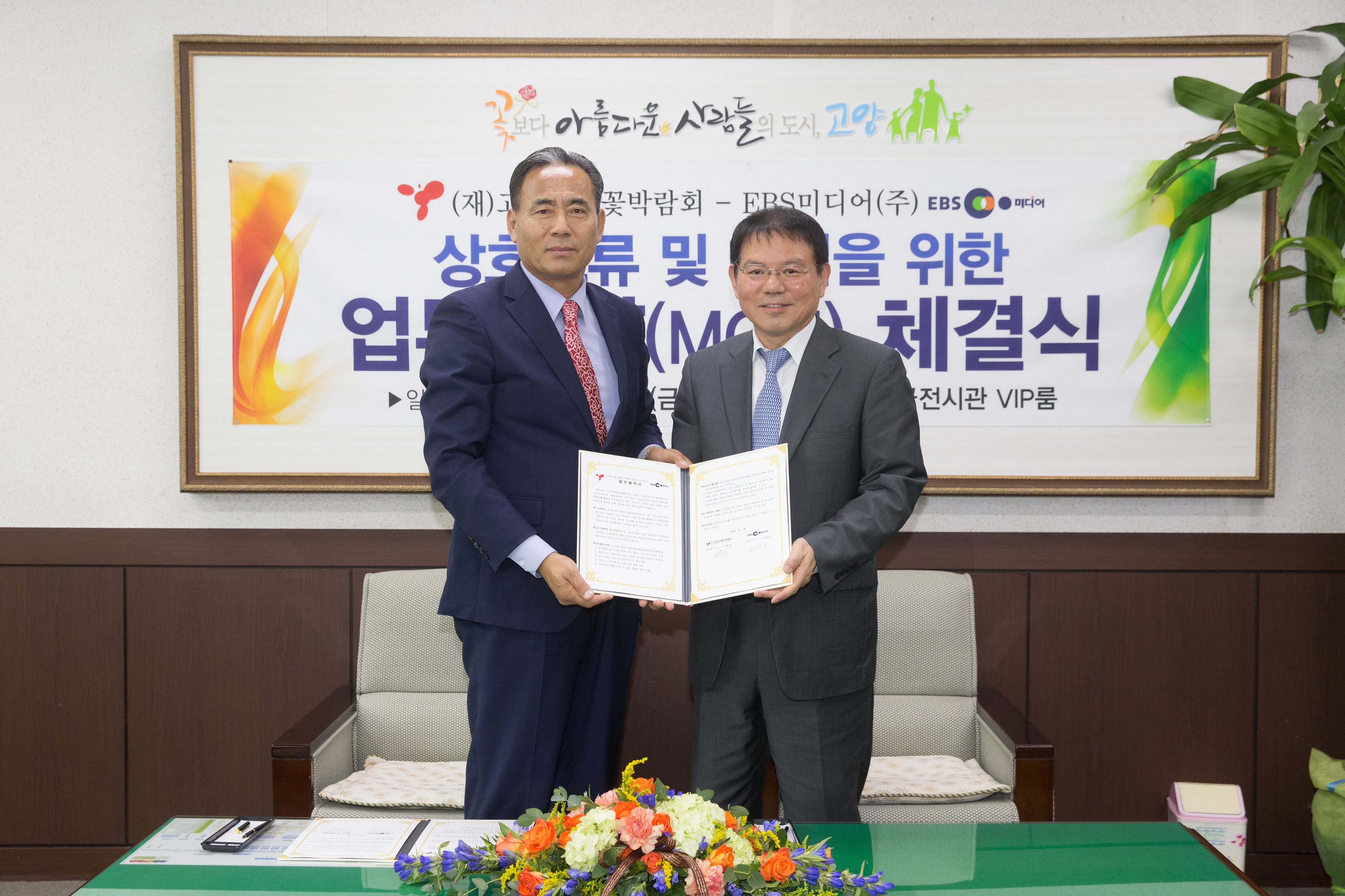 EBS의 내년 고양시 이전을 앞두고 (재)고양국제꽃박람회와 EBS미디어(주)가 꽃과 문화 콘텐츠를 융합한 창의적 전시 문화를 발굴하고 지속적 협력을 통한 상호 발전을 위해 맞손을 잡았다.