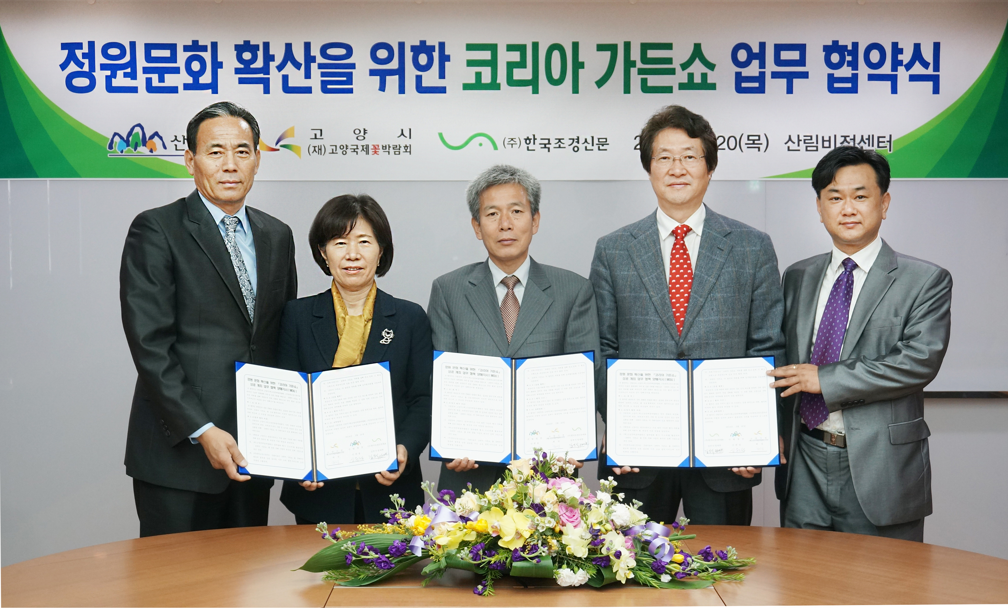 이번 협약식은 고양시 최봉순 부시장, 산림청 김현수 산림보호국장, 한국조경신문 김부식, 정대헌 대표, (재)고양국제꽃박람회 이봉운 대표이사를 비롯한 관계자가 참석한 가운데 진행되었다.