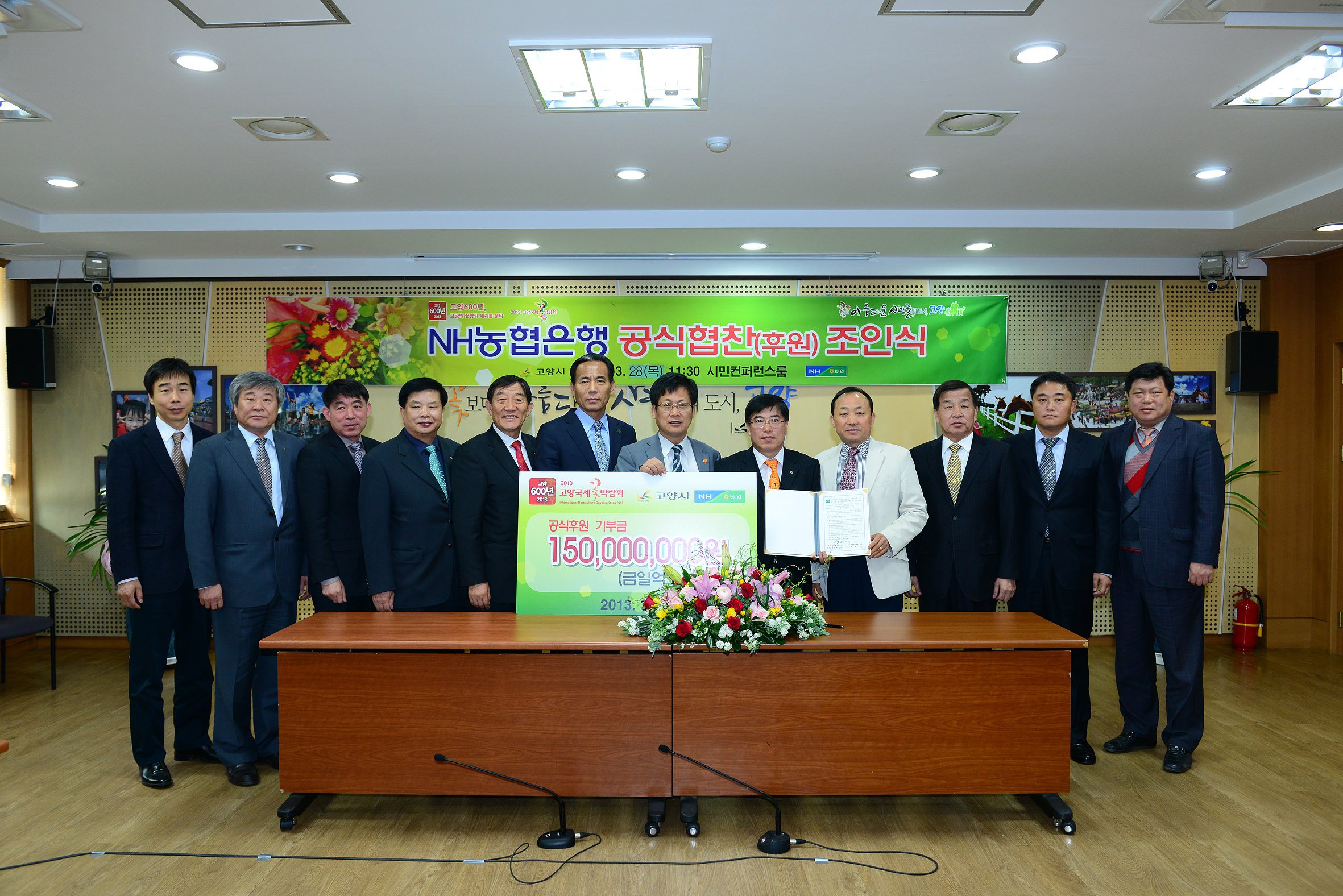 재단법인 고양국제꽃박람회가 2013고양국제꽃박람회의 공식 후원은행으로 NH농협은행을 선정하고 지난 28일 고양시청 시민컨퍼런스 룸에서 협찬 조인식을 가졌다.