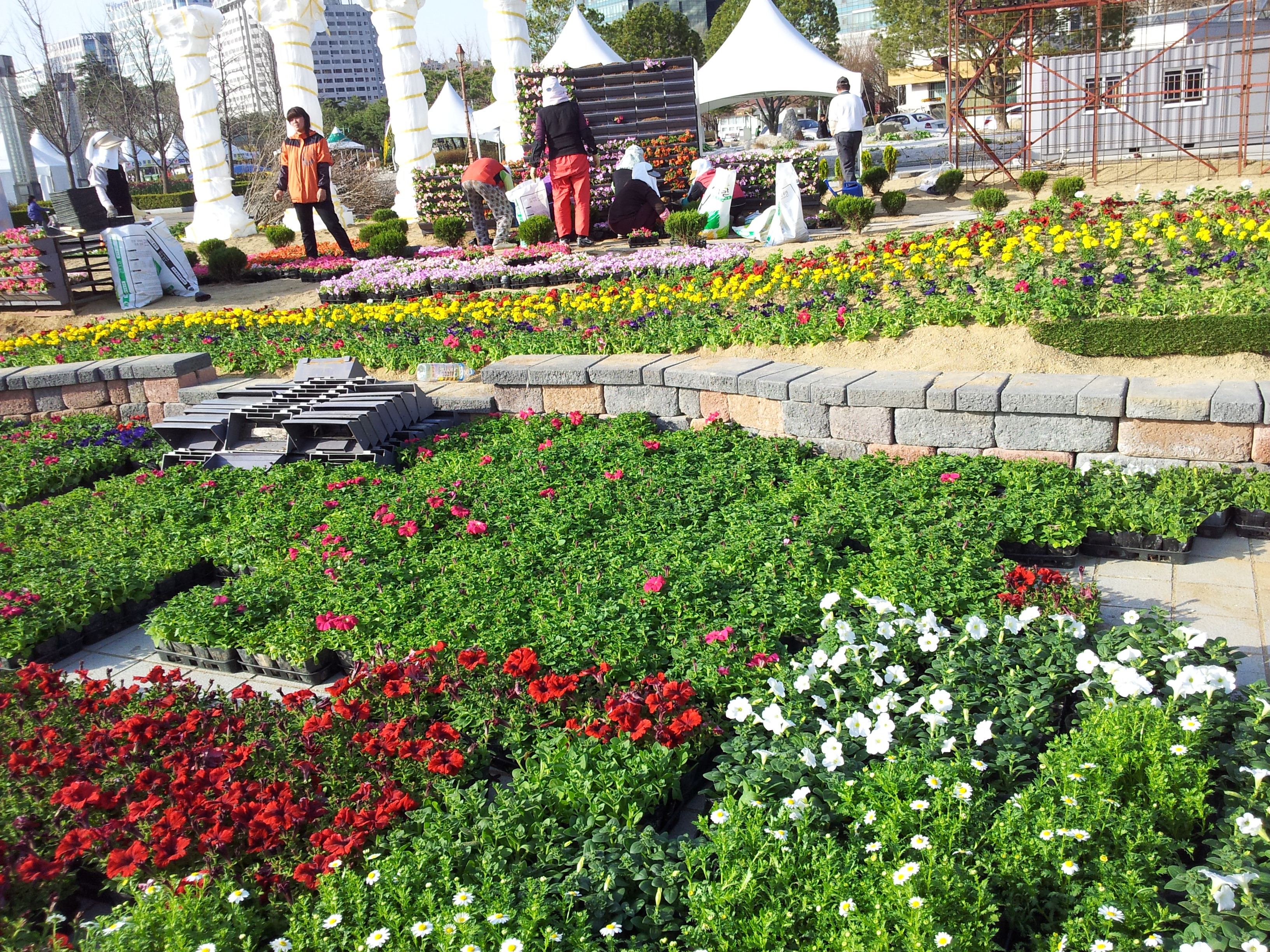 호수공원 야외를 화려하게 물들일 밀회의 정원은 겨우내 따스한 손길과 정성으로 살포시 빨강, 분홍, 노랑 미소를 띠고 함박 웃음을 지울 준비를 마쳤다.