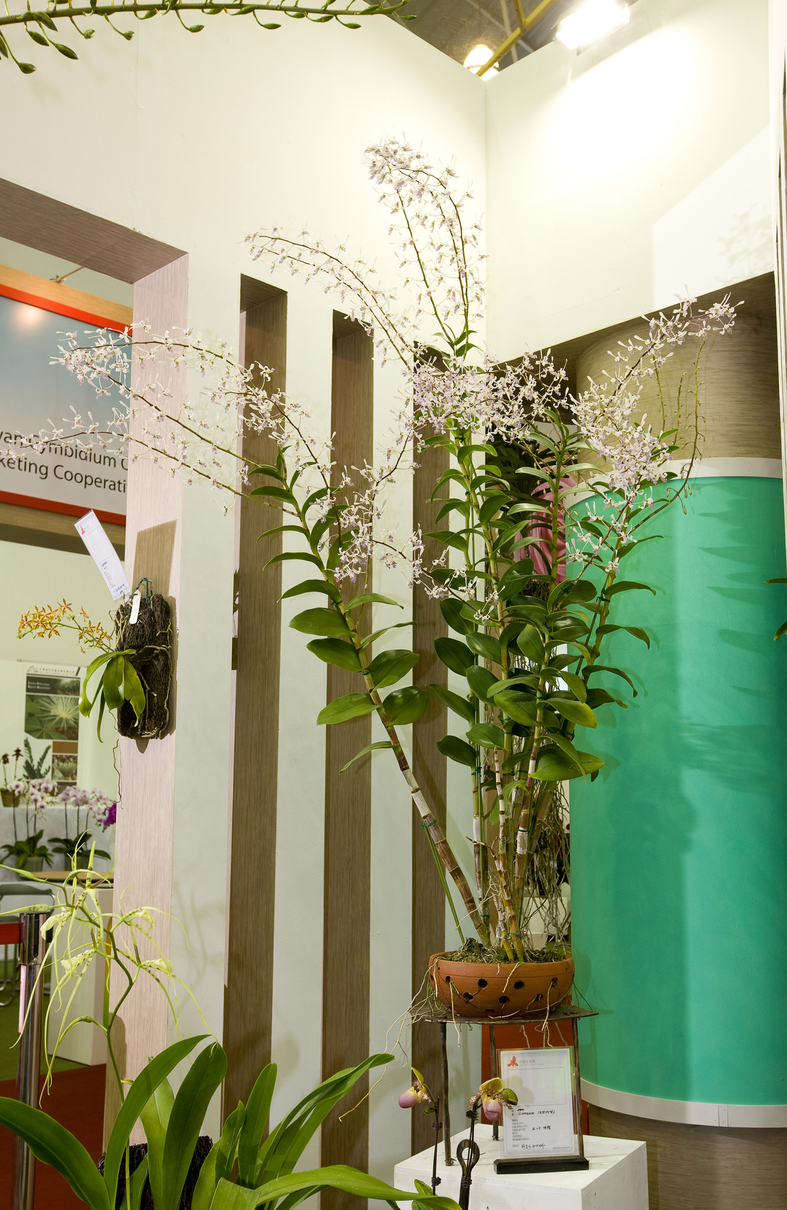 인도네시아 산 희귀난인 덴드로비움 라이오넬(Dendrobium Lineale)이 국내 최초로 한국고양꽃전시회에서 전시되고 있다.