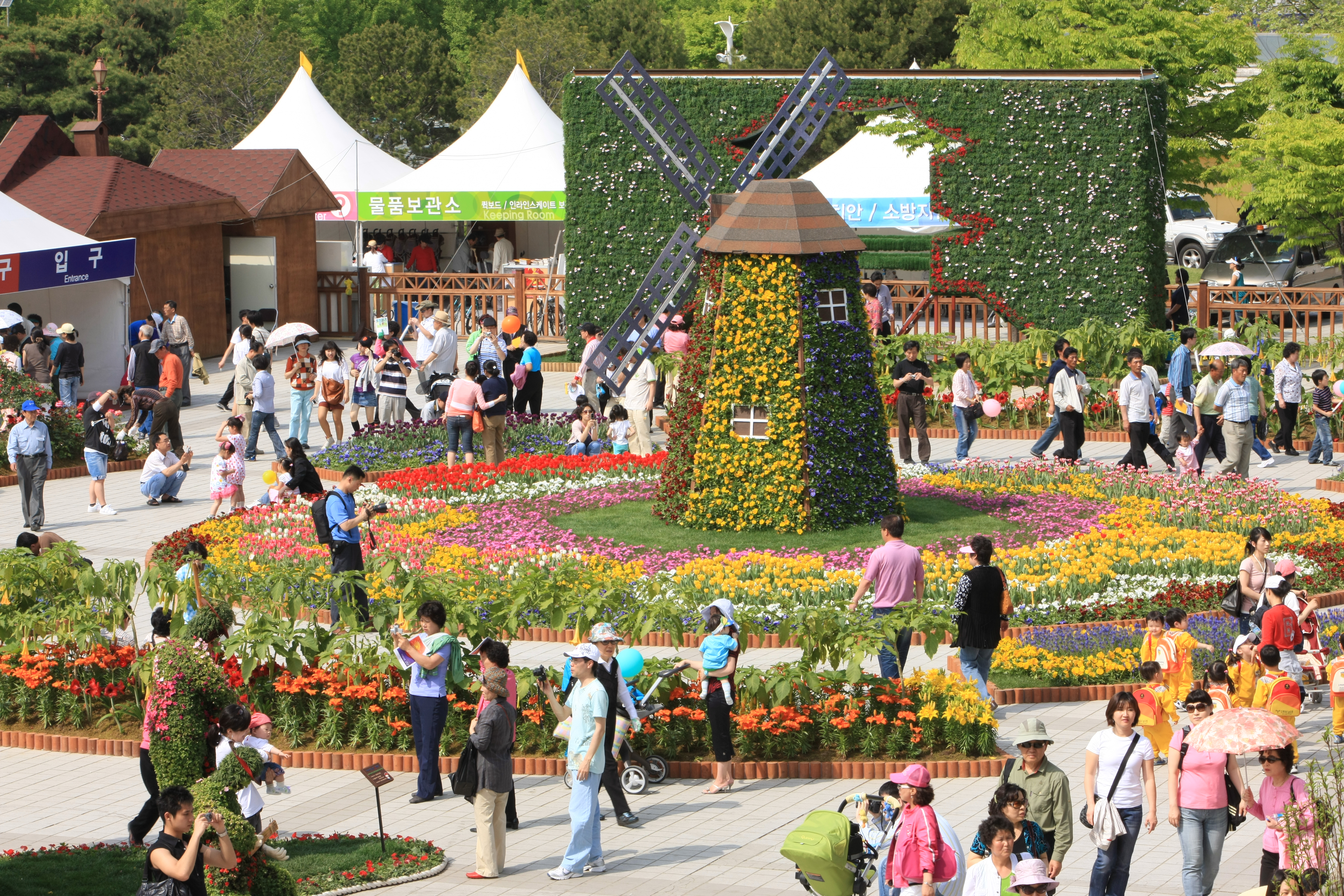 천만송이 봄꽃의 싱그러움과 화려함이 돋보이는 전시장은 꽃의 대향연이 펼쳐진다. 실내전시관에는 세계 각국의 희귀한 꽃이 전시되는 『참가업체관』을 비롯하여 꽃의 대향연, 고대정글, 산수조경 등 다양한 주제로 펼쳐지는 독창적인 『주제관』과 희귀곤충․나비 등이 전시되는 『자연생태관』, 국내 최고의 플로리스트의 예술적인 꽃꽂이 작품이 전시되는 『화훼장식관』이 마련된다. 또한 ‘꽃누르미’ ‘누름꽃’으로 불리는 세계 압화 공예작품과 베란다 조경, DIY 가정원예작품 등 실생활에 유용한 화훼상품이 전시되어 다양한 볼거리를 제공한다. 야외전시장에는 진귀한 분재 작품이 전시되며, 은은한 멋의 우리 고유의 자생화를 만날 수 있는 『자생화관』이 마련된다. 특히 자연친화적 전원주택에 테마별 꽃 화단이 선보이는 『주택정원』은 고양 쥬쥬동물원의 도움으로 앵무새, 공작, 토끼, 미니말, 기니피그 등 45종의 동물도 함께 만날 수 있다. 이밖에도 동화 속 장면을 연출한 『동화정원』, 매화․복숭아․단풍․돌담 등이 어우러져 담양 소쇄원과 같은 정취를 느낄 수 있는 『무릉도원 정원』, 무지개 색 일곱 가지 꽃으로 연출되는 『무지개 미로정원』, 튤립이 가득한 『구근원』, 『모자이크컬쳐 정원』, 『장미정원』등 12개의 테마 정원이 봄날의 정취를 더하게 된다.