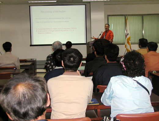 세미나실에서는 네덜란드 물레나(Moolenaar)사 대표(Mr. Fred Vierhout)로 부터의 구근재배에 관한 열띤 강의에 화훼재배농가 80여명의 전문적인 질문이 이어져 2시간의 특강시간이 부족하였다. 화훼선진국의 전문기술을 습득하려는 우리 화훼농가의 열의를 볼 수 있었다.