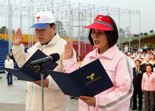 한편 강현석 조직위원장은 발대식 격려사를 통해 2003고양세계꽃박람회 행사의 성공적 개최를 위해 참여해 준 자원봉사자와 운영요원에게 감사의 뜻을 전하고, 꽃박람회장을 찾는 관람객에게 깊은 감명을 줄 수 있도록 각자 맡은 임무를 성실히 수행해 줄 것을 당부했다