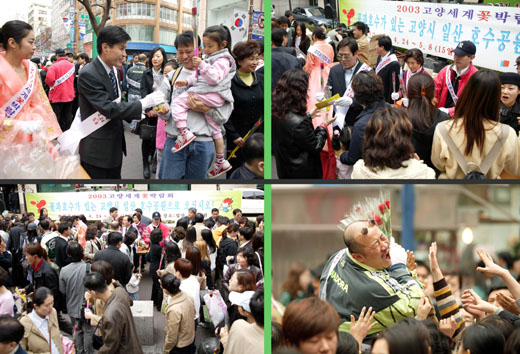 명동과 대학로를 찾아 꽃을 받아든 시민들은 한결같이 "예기치 않은 예쁜 꽃을 받게되어 너무 기쁘다"며 "앞으로는 일상생활에서 꽃을 가까이 하여 화훼농가 소득에 일조해야겠다"고 말하고 "2003고양세계꽃박람회의 개막일이 기대된다"고 말했다