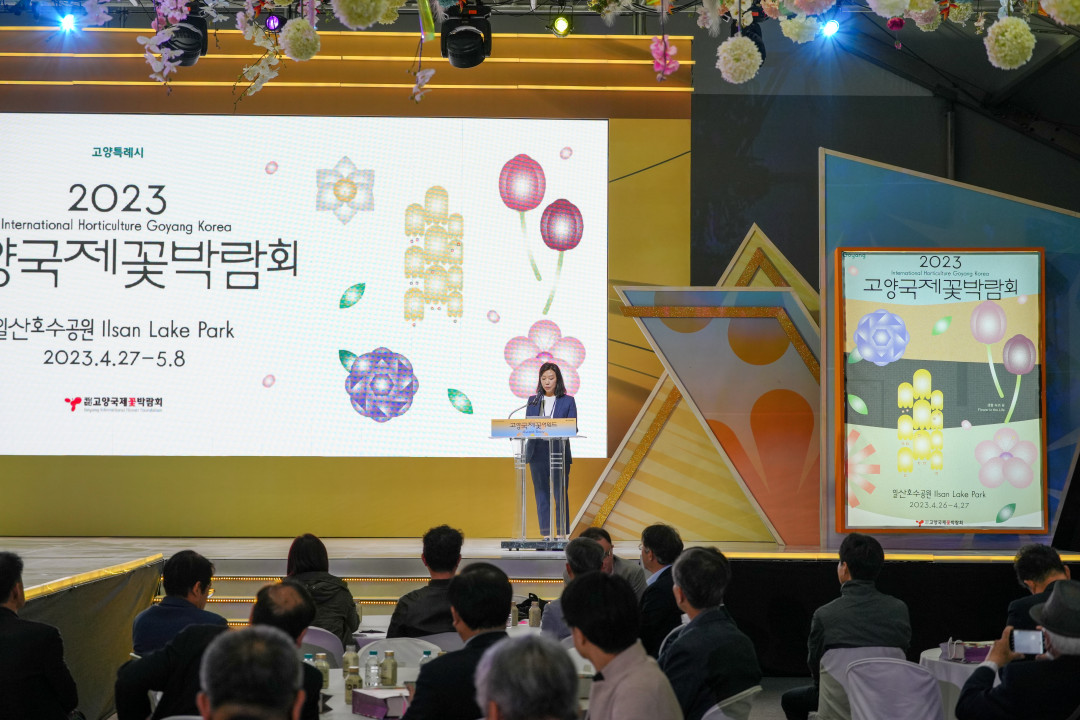 일산호수공원에서 개최되는「2023고양국제꽃박람회」행사 개막 하루 전인 26일 오전 11시 화훼교류관에서 이동환 재단법인 고양국제꽃박람회 이사장(고양특례시 시장)이 국내 외 기자단을 상대로‘프레스데이’를 개최했다.