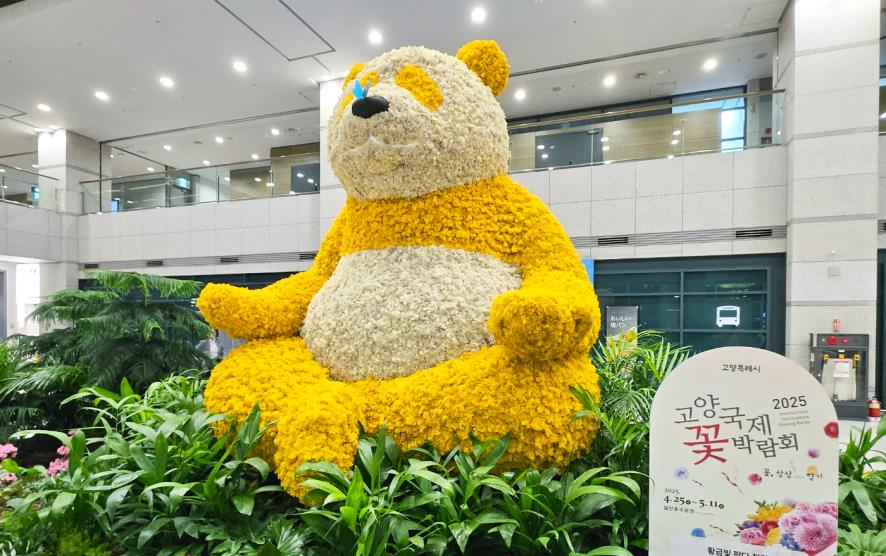재단법인 고양국제꽃박람회(이사장 이동환)는 4월25일부터 개최되는 ‘2025고양국제꽃박람회’에 앞서 인천국제공항공사와의 기관 간 협업사업의 일환으로 2025년도 메인조형물을 소형으로 형상화한 ‘황금빛 판다 정원’을 인천국제공항 입국장 실내에 조성했다고 밝혔다.