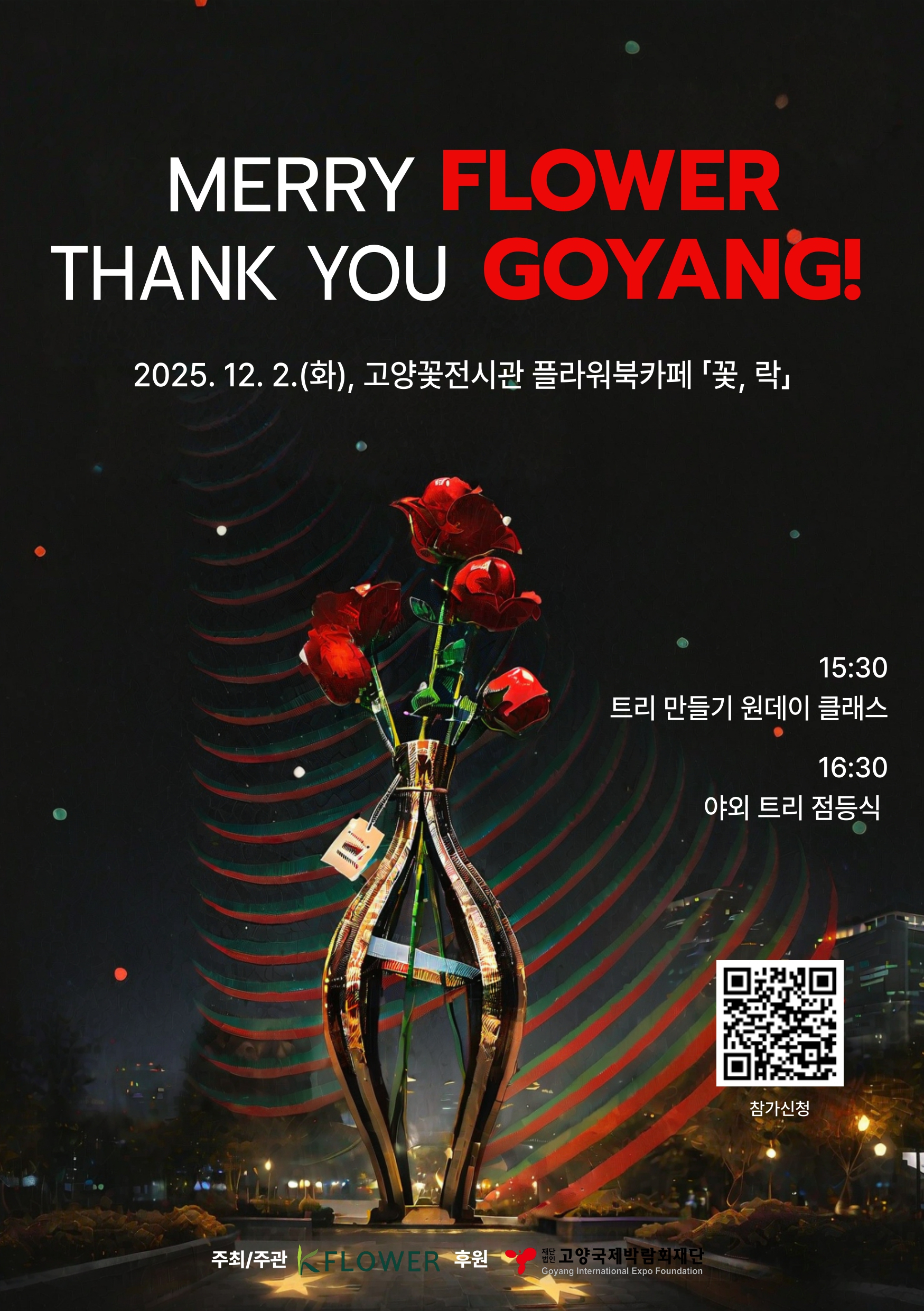 한 해 동안 꽃을 사랑해준 고양시민들에게 감사를 전하는 화훼 문화행사‘메리 플라워, 땡큐 고양!(Merry Flower, Thank you GOYANG!)’이 오는 12월 2일 고양꽃전시관 (플라워북카페)에서 개최될 예정이다.
